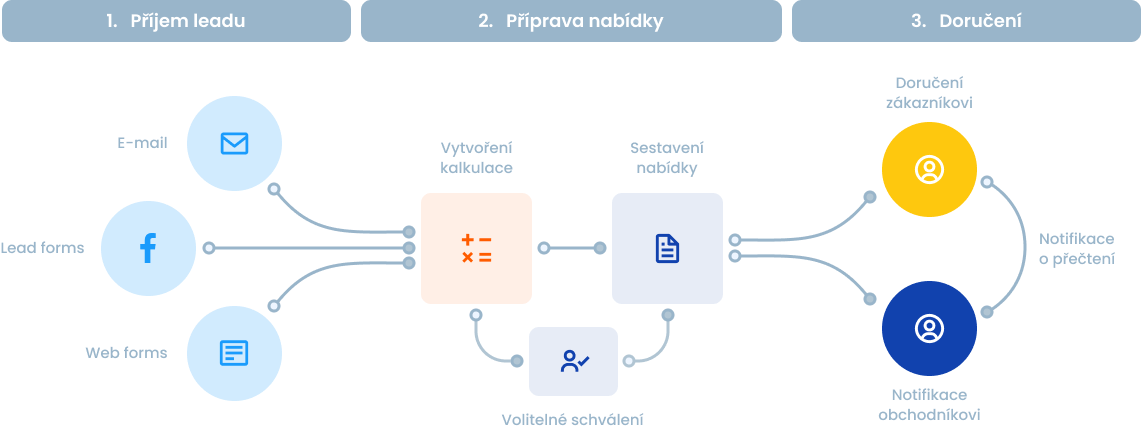 Vaše leady jsme schopni přijmou z marketingových kampaní, webových formulářů a také pouze zaslaným e-mailem.